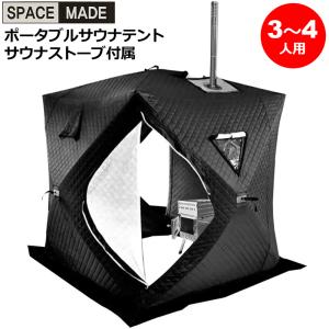即納 SPACE MADE テントサウナ ポータブル サウナセット 3〜4人用 薪ストーブ付属 1.8m×1.8m×2.1m サウナテント キャンプ用品 グランピング用 アウトドア用品