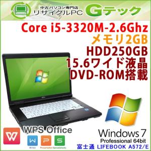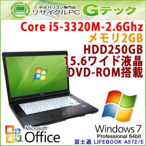 中古 ノートパソコン Microsoft Office搭載 Windows7 富士通 LIFEBOOK A572/E 第3世代Core i5-2.6Ghz メモリ2GB HDD250GB DVDROM 15.6型 / 3ヵ月保証