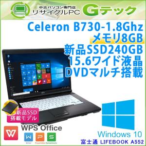 新品SSD搭載! 中古 ノートパソコン Windows10 富士通 LIFEBOOK A552/F Celeron1.8Ghz メモリ8GB SSD240GB DVDマルチ 15.6型 WPS Office / 3ヵ月保証
