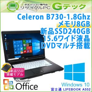 新品SSD搭載! 中古 ノートパソコン Microsoft Office搭載 Windows10 富士通 LIFEBOOK A552/F Celeron1.8Ghz メモリ8GB SSD240GB DVDマルチ 15.6型 / 3ヵ月保証
