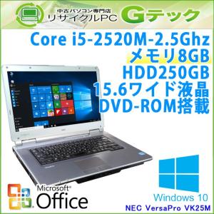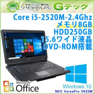 中古 ノートパソコン Microsoft Office搭載 Windows10 NEC VersaPro VK25M/X-C 第2世代Core i5-2.5Ghz メモリ8GB HDD250GB DVDROM 15.6型 無線LAN / 3ヵ月保証