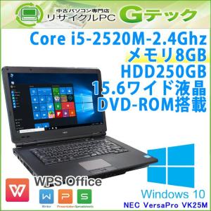 中古 ノートパソコン Windows10 NEC VersaPro VK25M/X-C 第2世代Core i5-2.5Ghz メモリ8GB HDD250GB DVDROM 15.6型 無線LAN WPS Office / 3ヵ月保証