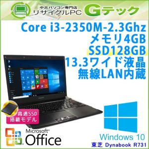 SSD搭載! 中古 ノートパソコン Microsoft Office搭載 Windows10 東芝 Dynabook R731/E 第2世代Core i3-2.3Ghz メモリ4GB SSD128GB 13.3型 無線LAN / 3ヵ月保証