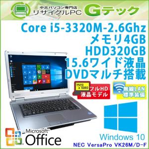 中古 ノートパソコン Microsoft Office搭載 Windows10 NEC VersaPro VK26M/D-F 第3世代Core i5-2.6Ghz メモリ4GB HDD320GB DVDマルチ 15.6型 無線LAN 3ヵ月保証