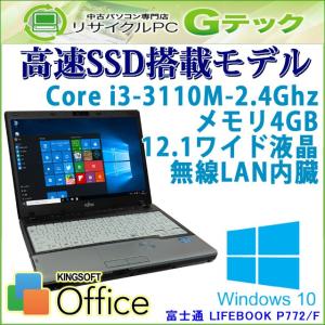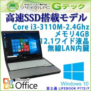 中古 ノートパソコン Microsoft Office搭載 Windows10 富士通 LIFEBOOK P772/F 3世代Core i3-2.4Ghz メモリ4GB SSD128GB 12.1型 無線LAN WEBカメラ / 3ヵ月保証