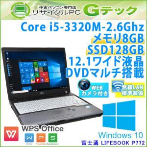 中古 ノートパソコン Windows10 富士通 LIFEBOOK P772/G Core i5-2.6Ghz メモリ8GB SSD128GB DVDマルチ 12.1型 無線LAN WPS Office / 3ヵ月保証