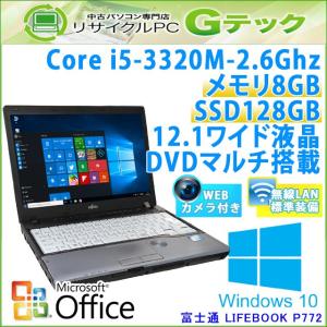 中古 ノートパソコン Microsoft Office搭載 Windows10 富士通 LIFEBOOK P772/G Core i5-2.6Ghz メモリ8GB SSD128GB DVDマルチ 12.1型 無線LAN / 3ヵ月保証