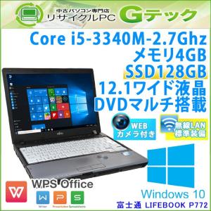 中古 ノートパソコン Windows10 富士通 LIFEBOOK P772/G 第3世代Core i5-2.7Ghz メモリ4GB SSD128GB DVDマルチ 12.1型 無線LAN WPS Office / 3ヵ月保証