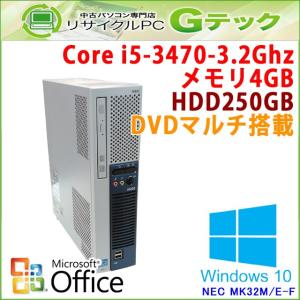 中古パソコン Windows10 NEC VK32M/E-F Core i5-3.2Ghz メモリ4GB HDD250GB DVDマルチ Office [本体のみ] / 3ヵ月保証