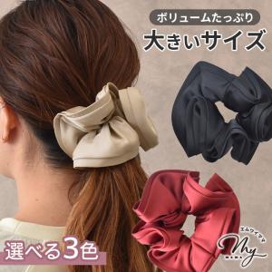 シュシュ 大きめ ボリューム サテン ヘアゴム 全3色 1個入り ■ おしゃれ ゴム 幅広 ヘアアクセサリー ギフト アレンジ まとめ髪 シンプル ■