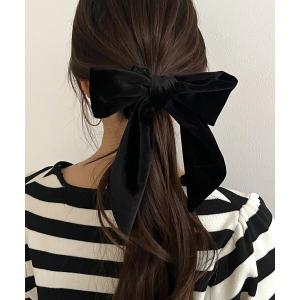 シュシュ 「 Jelly moo / ジェリームー 」 ブラックカラー ベロア リボン シュシュ / ヘアゴム / シュシュ