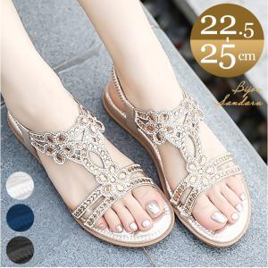 サンダル レディース 通販 フラットサンダル ぺたんこ きれいめ キラキラ ビーチサンダル 夏 ラインストーン ビジュー おしゃれ ボヘミアン ストラップ サンダル