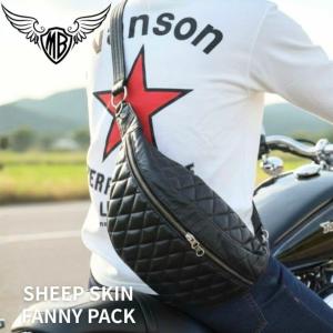 MOTOBLUEZ モトブルーズオリジナル シープスキンレザーファニーパック ダイヤステッチ レザーウエストボディバッグ BODY BAG FANNY PACK 羊革 MB-BF01