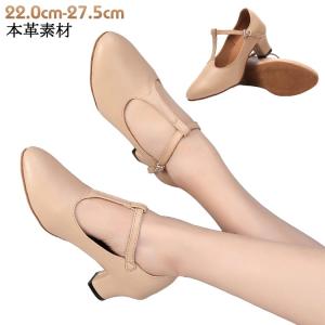 ジャズダンス シューズ キャラクターシューズ 本革 Tストラップレディース ジャズ シューズ 初心者 ベージュ ダンスシューズ ステージ テーマパーク
