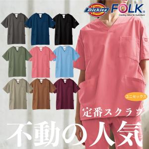 スクラブ お得な 上下セット 医療 男女兼用 白衣 介護 看護 制服 ストレッチ おしゃれ フォーク Dickies 7033SC 5017SC 裾上げ 刺繍 プリント
