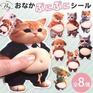 おなかシール お腹 ぷにぷに アニマル ステッカー 全8種 ゆうパケット送料無料 ■ 猫 犬 ぽっちゃり もちもち シール かわいい もっちり スクイーズ 動物 ■