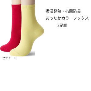 (ポスト投函 送料無料) 21〜23cm セシール スマートヒート 吸湿発熱・抗菌防臭カラーソックス2足組 SP463-C-2123