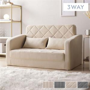【ポイント5倍!】3WAY ソファベッド 2人掛け アイボリー ダイヤキルト 肘付き 高反発ウレタン 体圧分散 寝具 リビング インテリア雑貨 組立品