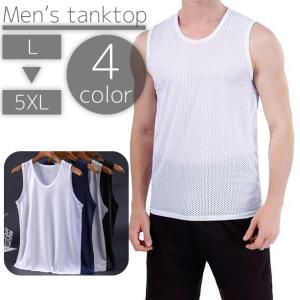 タンクトップ メンズ 男性用 インナーウェア 下着 ノースリーブ 袖なし Uネック メッシュ 通気性 大きいサイズ 単色 無地 黒 白 ブラック ホワ
