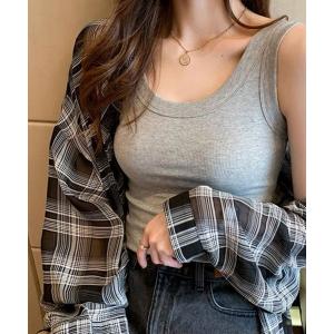 コットン素材 チラ見えを防ぐ スクエア タンクトップ ブラ紐を隠せる kauliina