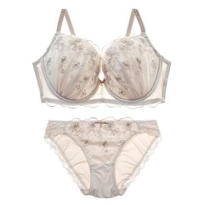 ブラジャー ショーツセット 「運命のブラ」ふっくらバストメイクブラ&ショーツセットエスティヴォントミューズ(大きな胸を小さく見せるタイプ)(Fカップ)