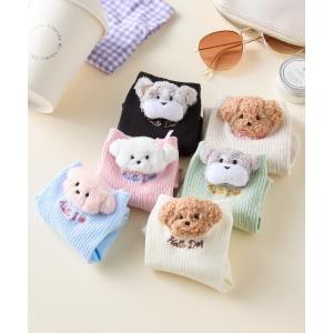 靴下 綿混わんこマスコット付きソックス15cm丈 レディース