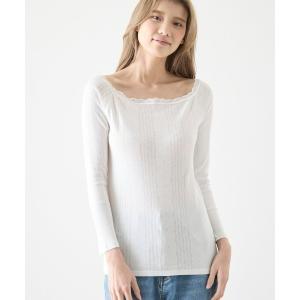 インナーシャツ 肌着 綿100%針抜きレース付きスクエアネック長袖 レディース