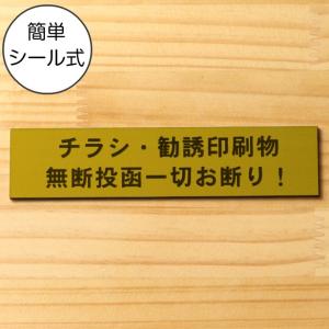 チラシ 勧誘印刷物 無断投函一切お断り サインプレート 真鍮風 ゴールド 注意喚起 迷惑投函 広告 禁止 金色 屋外対応 水濡れOK シール式 メール便送料無料
