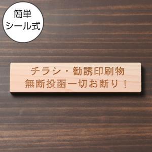 チラシ 勧誘印刷物 無断投函一切お断り サインプレート 木製 ナチュラル 注意喚起 迷惑投函 広告 禁止 国産ヒノキ 多少の水濡れOK シール式 メール便送料無料