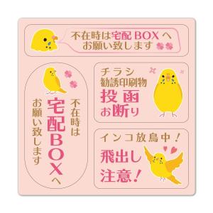 サインマグネットステッカー 3メッセージセット インコ ピンク 不在時宅配BOXへ チラシ印刷物投函お断り インコ飛出し注意! お知らせ ゆうパケット対応210円〜