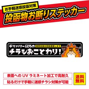 猫ステッカー お断りします 郵便ポスト セールス チラシ フリーペーパー 勧誘 訪問販売 無断投函 50×200 シールタイプ 猫イラスト ヨコ型