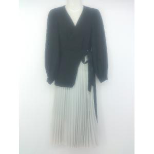 ◇ DHOLIC ディーホリック プリーツ 切替 長袖 膝下丈 ワンピース ブラック レディース P