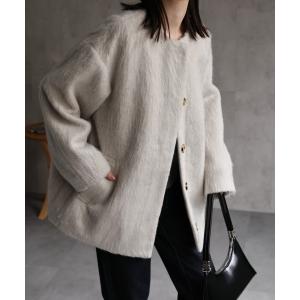 ノーカラーコート コート シャギー ノーカラーコクーンコート レディース