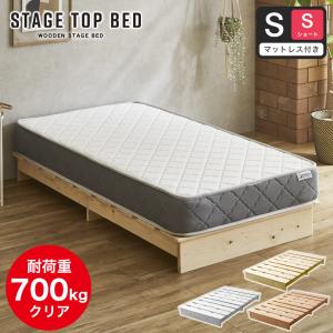 ステージトップベッド シングルショート【ショートサイズ】 20cm厚nerucoバリューポケットコイルマットセット ヘッドレス ローベッド 耐荷重350kg