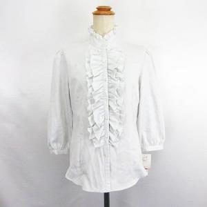 未使用品 トップバリュ TOPVALU ブラウス シャツ 七分袖 スタンドカラー フリル 地模様 11R ライトグレー ※EKM レディース