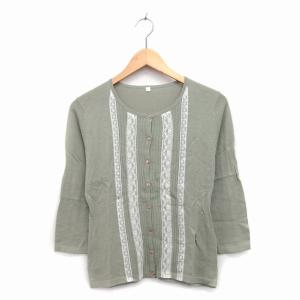 トップバリュ TOPVALU カーディガン 七分袖 レース ギャザー コットン L グリーン 緑 /KT21 レディース