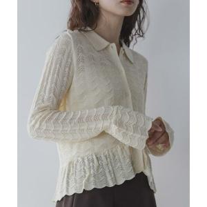 カーディガン 透かし編みニットシャツカーディガン レディース