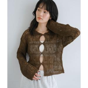 カーディガン サイドリボンリブニットシャツカーディガン レディース