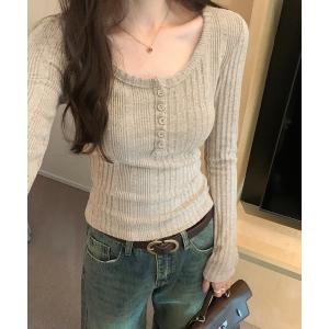 tシャツ 「お気に入り数2.7万人突破!/新色ライトグレー追加」ハーフボタン ヘンリーネック リブカットソー ニットソー レディース