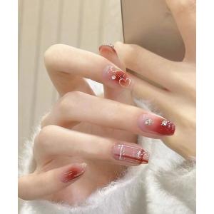ネイルチップ ネイルシール 3D水光ネイルリングネイルシアーコーラルピンクマグネットスクエアネイルチップ