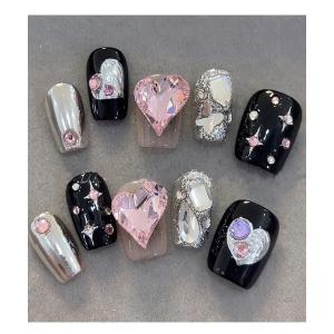 ネイルチップ ネイルシール 3D水光ネイルピンクマグネットカラフルラメグラデーションバレリーナネイルチップ(3) 夏ネイル