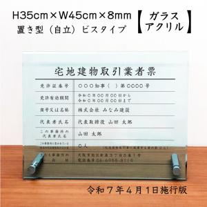 宅地建物取引業者票(令和7年4月1日施行版) ガラスアクリル 8mm /置き型(自立)ビスタイプ H35×W45cm tk-glass-acryl01-jiritu