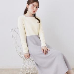【ハレの日・通勤】スクエアネック バイカラー ニットワンピース