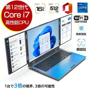 ノートパソコン パソコン 3画面 モニター 顔認証 FHD 16インチ Windows11 core i7-1260P ゲーム 作業 ビジネス type-c ステレオスピーカー 指紋認証 大画面 副業