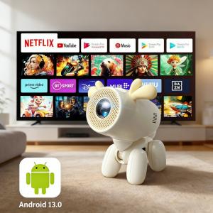 プロジェクター 軽量 本体 家庭用 天井投影 小型 天井投影 135°回転 4K対応 wifi6 自動台形補正 高輝度 Netflix/YouTubeb ndroid搭載 スマホ 高画質 静音 壁