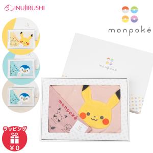 モンポケ ギフトセット エプロンスーツ&帽子 70cm〜80cm ベビー服 赤ちゃん ベビーウェア ポケモン ピカチュウ 出産祝い ギフト プレゼント 犬印