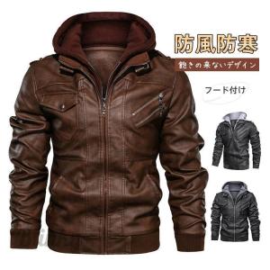 ライダースジャケット 革ジャ フード付け 新作 ビター系 お兄系 PUレザー ジャケット アウター バイクフェイクレザー