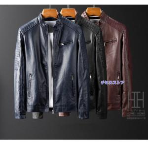 メンズ 革ジャン バイク レザージャケット 大きいサイズ PUレザー 多ポケット ゆったり アメカジ ビター系 ストリート ライダース ジップアップ 襟付き