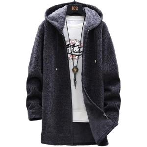 アスペルシオ フードつき ジップアップ ロングコート ビター系 お洒落 裏起毛 アウター メンズ 長袖 裏ボア (ダークグレー, XL)