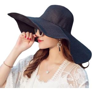 【並行輸入品】Hisght レディース ガールズ 大きなつばのつば広帽子 夏の日よけ帽子 海辺 ビーチ 麦わら帽子 フロッピー ビッグスーパーワ